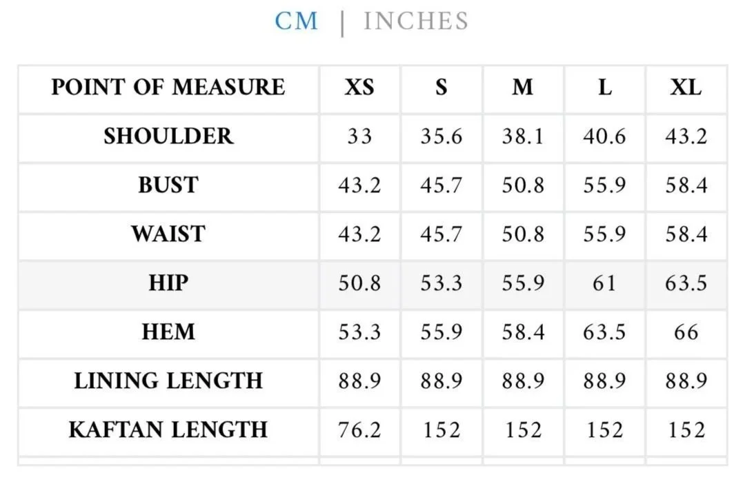 KAFTAAN WITH PRECIOUS SEQUINS AND STONES, TIEKNOT TASSELS, AND PAIRED WITH A