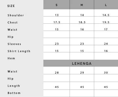 A fully embellished color blocked lehnga with gotta work and hazar boti on the bottom and elaborate motives towards the top. It is paired with a richly embroidered sequence jaal choli, embellished with a jeweled neckline and border on the sleeves. The look is completed with a deep red dupatta with our staple floral jaal made in naqshi and intricate sequence boarder.
